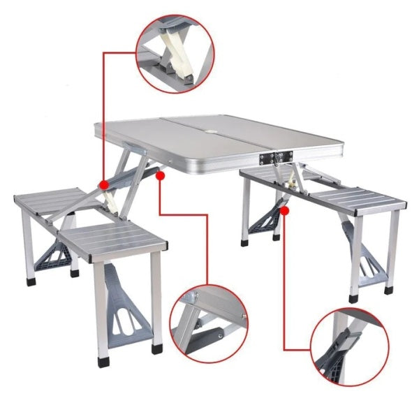 Masa pliabila Picnic tip Geamantan cu 4 Scaune din Aluminiu
