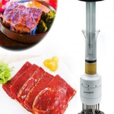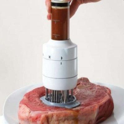Acum poti rezolva ambele probleme deodata, chiar daca te hotarasti inopinant ca ti-ai placea o friptura suculenta, prepari repede sosul, sau il iei din magazin, il pui in injector, intepi carnea bine, si minunatul sos marinat va ramane acolo, gata sa fie pus pe gratar.