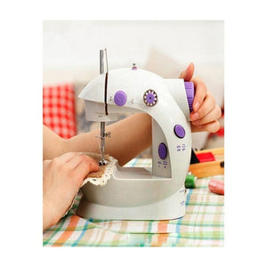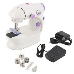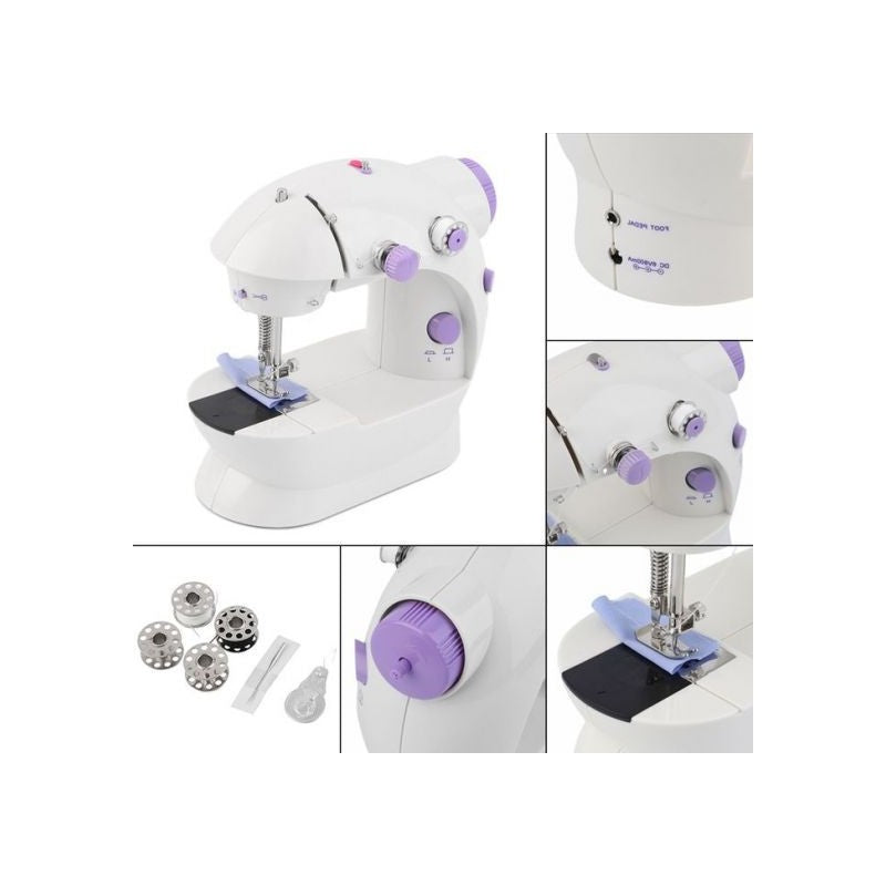 Masina de cusut electrica, portabila functioneaza cu incarcator de 220V, sau cu baterii, are pedala pentru reglarea vitezei de cusut, 5 bobine de ata incluse si accesorii.