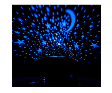 Lampa de veghe este preferata oricarui copil. Cu ajutorul acestei lampi copiii se pot bucura de o atmosfera relaxanta si o priveliste minunata. Cei mici vor avea parte de momente linistite inainte de somn si ii va ajuta sa adoarma rapid si confortabil. Aceasta lampa de veghe are un design de stele, de diferite dimensiuni care se rotesc sau raman stabile, distanta de proiectie este de 3 metri. Stelutele proiectate sunt albastre, asigurand o stare de liniste micutilor si un somn relaxant.