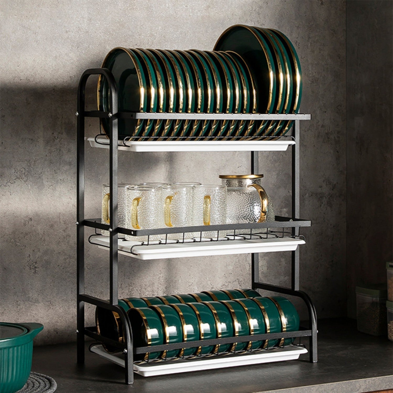 Raft metalic pentru vase si tacamuri, 3 polite