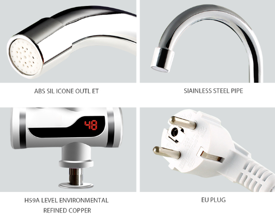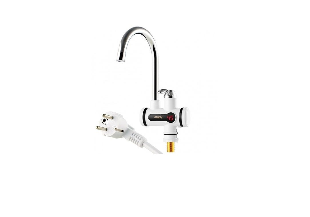 Robinetul electric are un cap pivotant ce se roteste la 360 grade si poate fi montat atat la baie, cat si la bucatarie. Alegeti confortul din toate punctele de vedere, investitia initiala fiind minima comparabil cu cea a unei centrale termice sau a unui boiler. Apa calda este necesara in orice moment al zilei, de la spalarea fetei si a dintilor dimineata, pana la frecventele spalari pe maini sau ale vaselor si celorlalte obiecte, iar acest robinet electric instant va ofera un flux de apa calda de pana la 2.5 litri/minut, in orice moment aveti nevoie. Caracteristici: - robinet electric cu incalzire instantanee - putere maxima nominala: 3000W - voltaj AC 220V, functioneaza prin alimentare la priza - frecventa nominala: 50Hz - presiunea apei: 0.04-0.5 MPa - temperatura apei poate fi reglata intre 30-60 grade C - ecran LCD care afiseaza temperatura apei (citire clara) - are un consum redus de energie - factor de rezistenta la apa IPX4 - durata de functionare: > 10.000 h - capacitatea de incalzire a apei: 2-2.5 litri/minut - robinetul poate fi rotit la un unghi de 360 grade pentru a fi mai accesibil - conceput doar pentru utilizare in spatii interioare (baie, bucatarie, cabane) - dimensiuni robinet 15.5 x 13 x 6.5 cm Pachetul contine: - 1 x robinet electric - 2 x accesorii pentru montare - 1 x manual de instructiuni