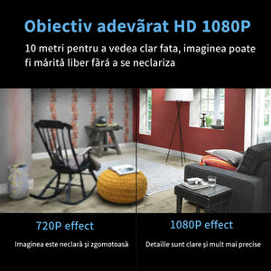 Mini camera WiFi wireless 1080P HD oferă imagini clare și detaliate, astfel încât să nu ratați niciun moment important. Calitatea video Full HD asigură o vizualizare precisă, zi și noapte.