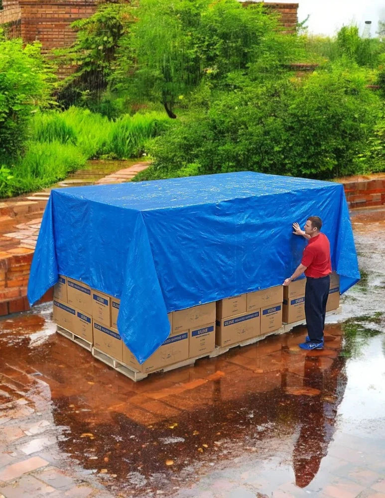 Prelata impermeabila, dimensiune 4m x 5 m este rezistenta la inghet, UV, ploaie, deosebit de eficienta ca si husa de protectie pentru utilaje, autoturisme, gradina, materiale de constructii, depozite, hale.