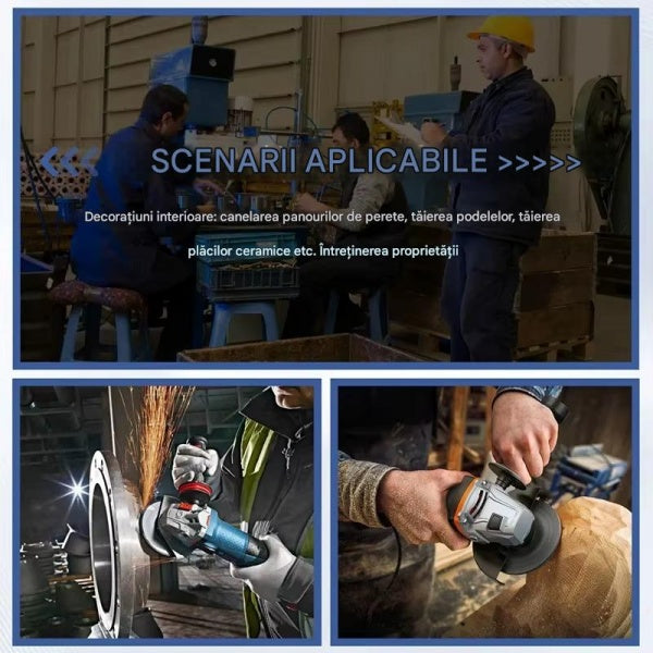 • Polizor unghiular – viteză de rotație 10.000 rpm, pentru tăieri rapide și eficiente.