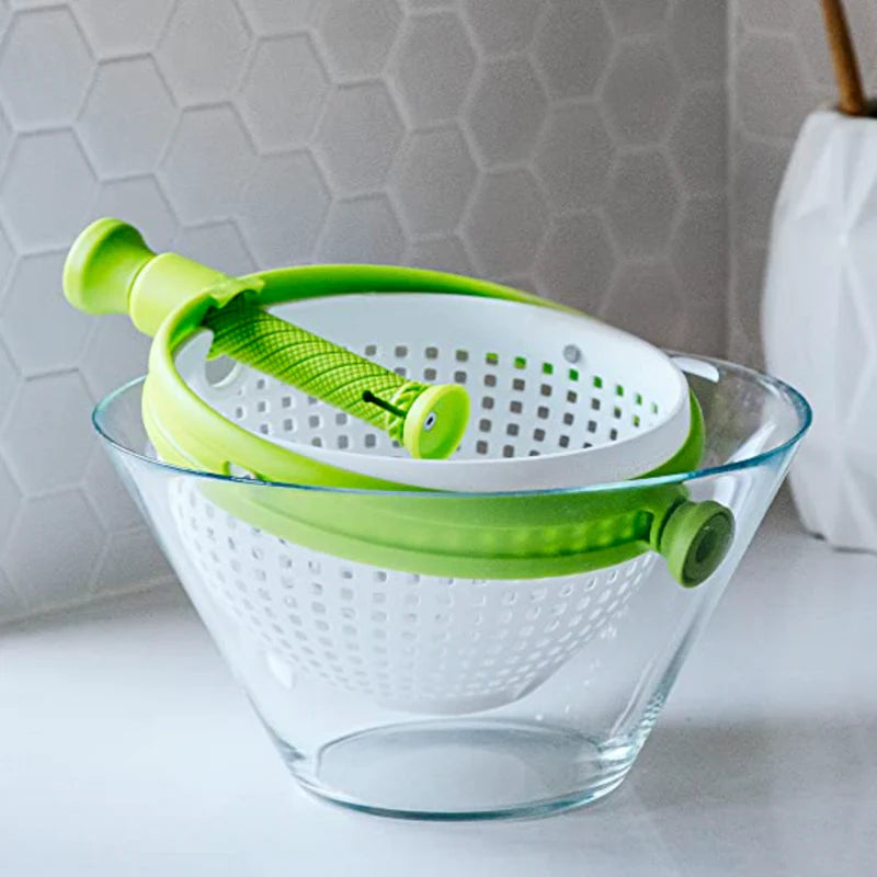 Piciorul din silicon va tine tare atunci cand se invarte la cele mai mari rotatii, chiar si la o chiuveta umeda! Cosul spinner pentru salata verde este conceput pentru a va pastra mancarea inauntru. Doar impingeti manerul pentru o oprire rapida. De asemenea, poate fi spalat la masina de spalat vase.