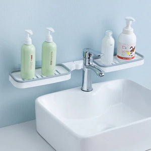 1. Conceput cu un suport dublu ce poate fi pliat si montat atat deasupra chiuvetei din baie la un unghi de 180°, cat si pe colt la un unghi de 90°.